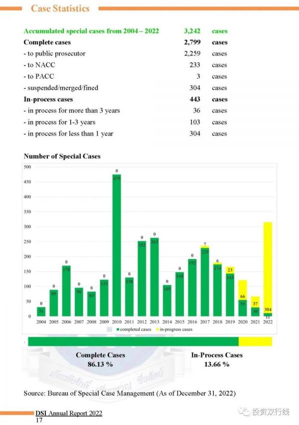 截至2019年,DSI调查的案件绝大部分都已结案,而已结案的案件中有80%被移交公诉机关。可见,一旦被DSI调查,涉嫌违法的公司或个人将难逃法律的制裁。