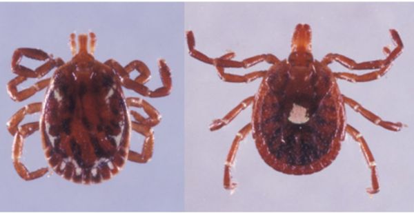 左:成年雄性孤星蜱虫;右:成年雌性孤星蜱虫 。丨来源:https://entnemdept.ufl.edu/creatures/urban/medical/lone_star_tick.htm