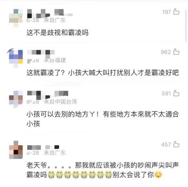 在中文社交平台上,关于熊孩子的吐槽越积越多,呼吁设置儿童专属车厢、专属影厅、专属餐厅等的呼声也越来越高,设立“无儿童区”的声量也越来越大。