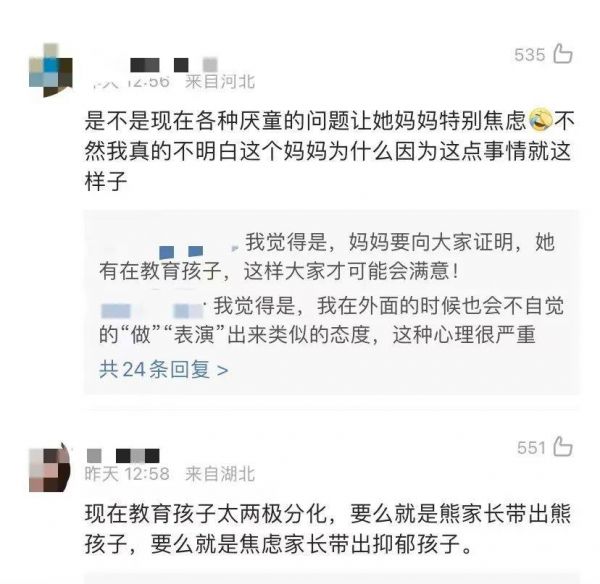 事实却是,真正的熊孩子家长不会在乎这些声音,这种“厌童”的氛围却给普通孩子家长,尤其是妈妈造成了极大的心理压力。
