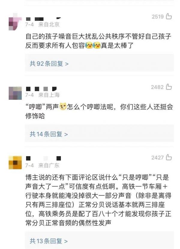 五大三粗的大汉在高铁上高声打电话无人过问,闹觉的小孩却被反复提醒。