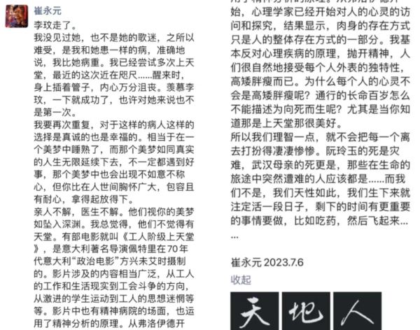 也是基于这个原因,我会认为无需抗拒分析李玟的抑郁症成因——相比于回避,揭示它,更有社会教育意义;我们更无需因为“恐弱”而刻意剥离掉某些显而易见的致郁因素。