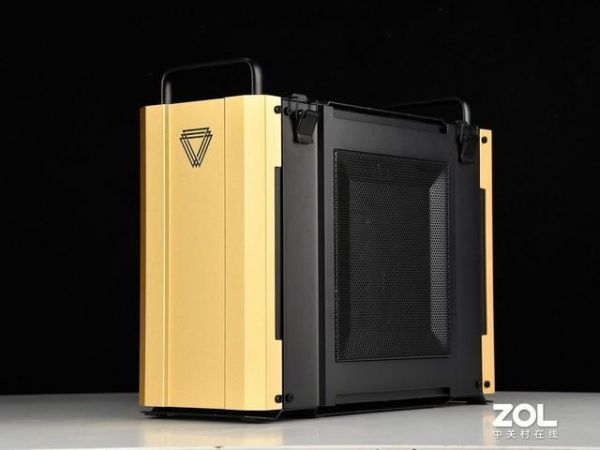 摩尔线程智娱摩方机箱采用骨伽DUST 2,金色+黑色全金属材质外壳,前端面板上方正中间位置贴合了摩尔线程logo。