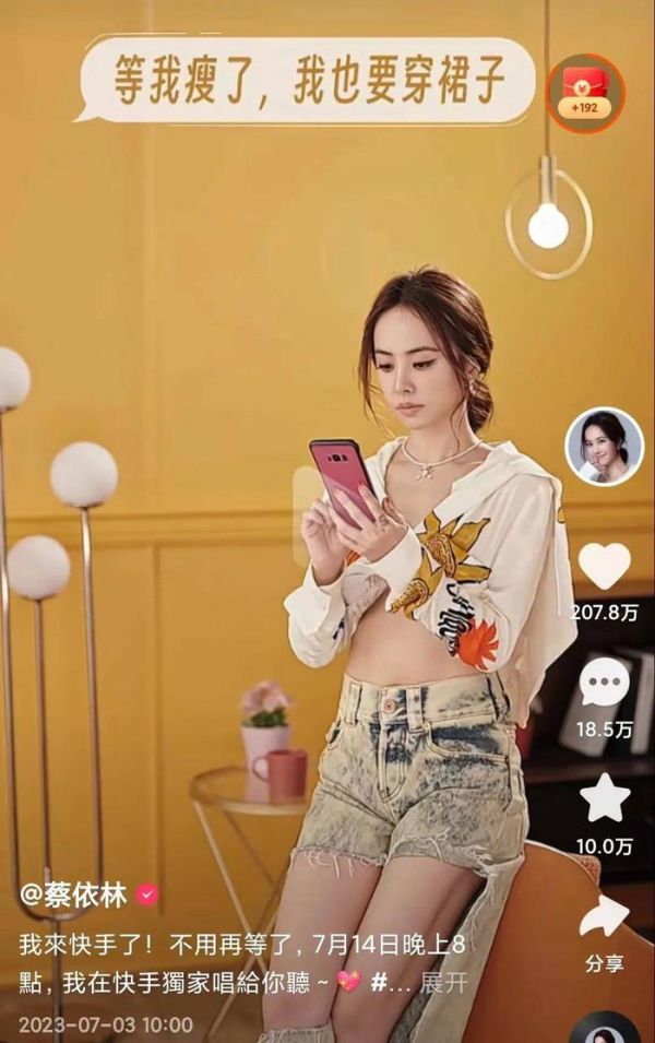 7月3日,华语天后蔡依林正式宣布入驻快手,且在官宣短视频中透露,其将于7月14日晚8点在快手独家直播开唱,截止目前,该短视频已突破200多万点赞,蔡依林快手账号的粉丝量也突破了620多万。