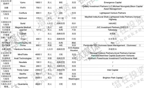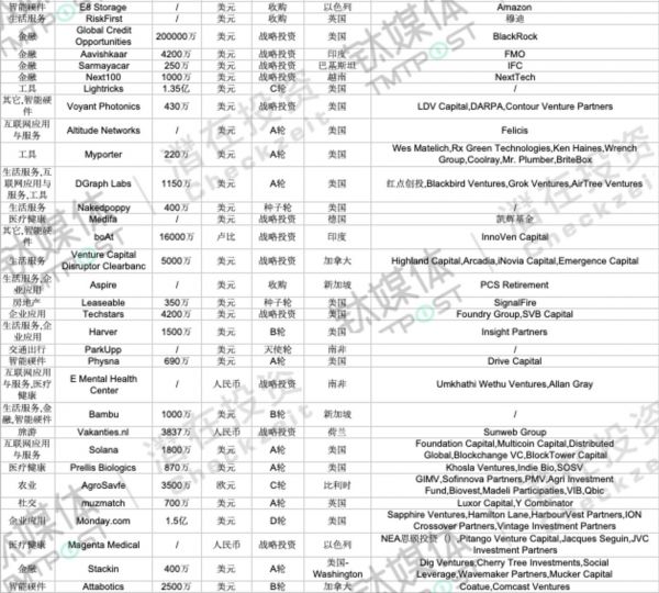 ✔. 本周国外共收录104起投融资事件,智能硬件、医疗健康、生活服务等多领域资本火热。