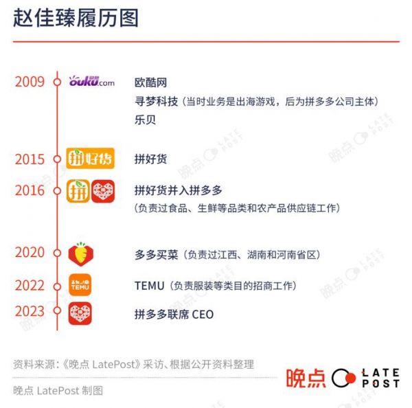 从 2009 年加入黄峥创办的欧酷网开始,赵佳臻参与了这一体系内几乎所有重要业务的开拓,虽不像陈磊、顾娉娉那样迅速进入最核心管理层,但也在一步步逐渐扩大业务范围和管理半径。