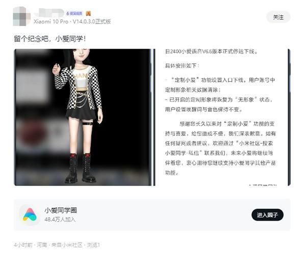 小米小爱同学团队一则公告让许多米粉感到遗憾,“定制小爱”功能将在7月10日24:00小爱语音V6.6版本停运下线。包括定制小爱功能设置入口下线,用户帐号中定制形象相关数据清除。