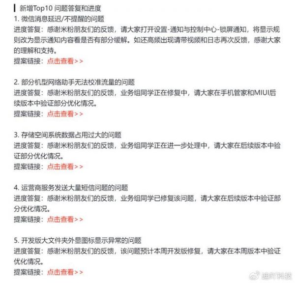 但还好的是,小米MIUI为了及时止损,直接带来了进展通报,以此来让用户的体验变得更好,并修复更多问题。