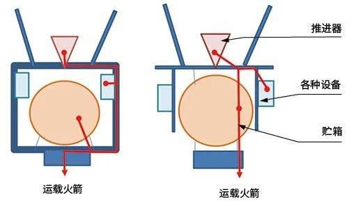图5 传统航天器(左)与SLIM(右)载荷路径(红箭头表示方向)