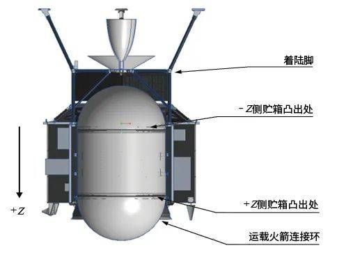 通常,卫星和探测器推进剂贮箱的载荷流动路径独立于主结构,SLIM结构系统的低资源优化措施是将贮箱侧壁作为探测器的主结构,采用在贮箱侧壁施加载荷的方式,从而削减结构材料(见图5)。因此,主推进器、着陆架结构、导航相机等与着陆相关的部件大多必须配置在贮箱上侧(-Z)。SLIM采用的设计是将支撑它们的结构全部与位于-Z侧的贮箱凸出处连接,将-Z侧产生的载荷通过贮箱侧壁传递到火箭侧。由此,可以省略从-Z侧贮箱到+Z侧贮箱之间的结构材料(见图6)。