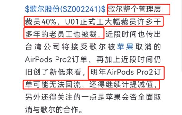 至12月,歌尔股份整个管理层裁员40%的消息,也一度引发热议。据离职员工表示,管理层裁撤主要原因是“公司订单少养不下这么多管理类”,其间,接受公司安排的部分管理人员被降为了作业员。