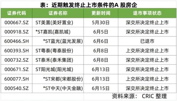 根据克尔瑞发布的报告,当前所有A股上市公司中,共有12家房地产行业上市公司面临“1元退市”的风险,其中8家房企已锁定退市。