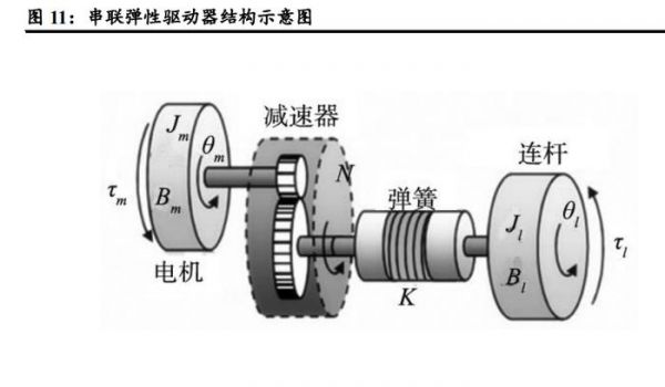 目前市场上仿人机器人的驱动单元主要有三种类型:传统驱动单元、串联弹性驱动 单元和准直驱驱动单元。 (1) 传统驱动单元:一般采用高转速、低扭矩电机搭配高传动比减速器,输出扭矩 大、运动精度高。但人形机器人小型化、轻量化需求对减速器的体积和重量要 求极高,目前主要使用谐波减速器及少部分 RV 减速器,高减速比精密行星减 速器仍存在一定使用障碍。 (2) 串联弹性驱动单元:其与传统驱动单元的区别在于输出端和负载之间采用弹性 部件连接,优势是弹性部件提高了驱动单元的柔度,使机器人关节柔顺性得到改善。但弹性部件对高频运动的响应性差,导致驱动单元系统带宽低、动态性 能差,无法应对实际工况的复杂快速变化。