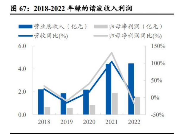 公司业务结构与哈默纳科相似,聚焦谐波减速器、机电一体化产品。除了精密行星 减速器暂未涉及,公司收入构成与哈默纳科基本相似。2022 年公司总营收 4.46 亿 元,谐波减速器及金属部件占比 93.42%,机电一体化产品占比 5.76%。2022 年实现 毛利 2.17 亿元,谐波减速器及金属部件占比 93.60%,机电一体化产品占比 5.01%。