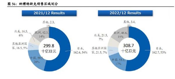 日本和中国是主要销售市场。2022 年公司在日本地区销售占比 53%,销售额 1627 亿日元;其次是中国占比 17%,销售额 531 亿日元。相比 2021 年,2022 年公司的 销售增长主要来自于北美洲和亚洲其他国家。