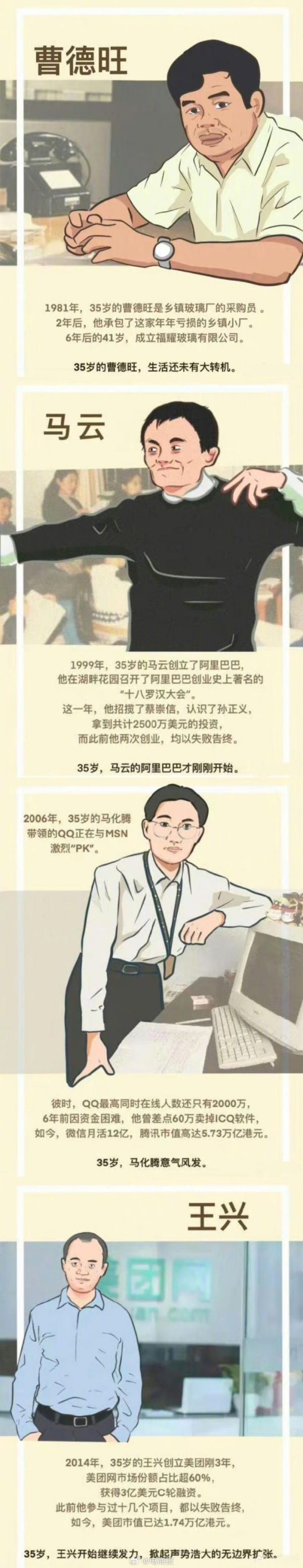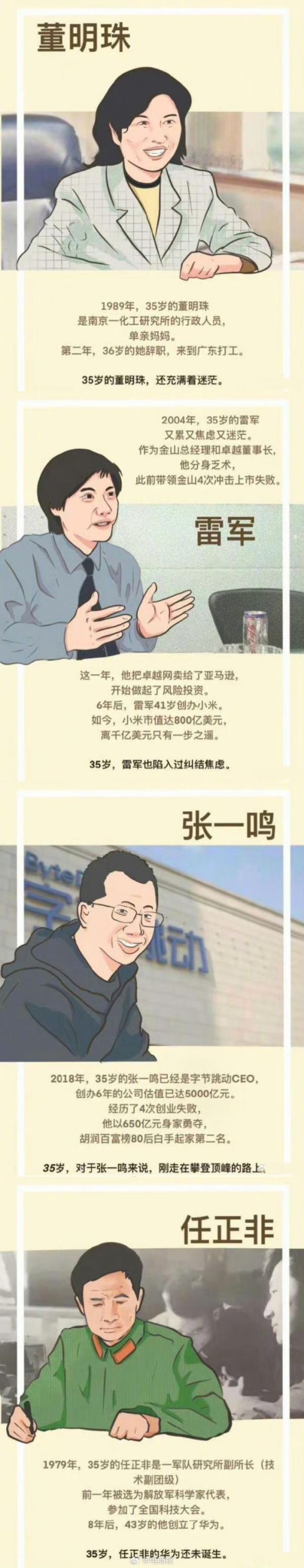 马云、马化腾、王兴、雷军、董明珠……大佬们的35岁都在干什么?(图源:人才说)
