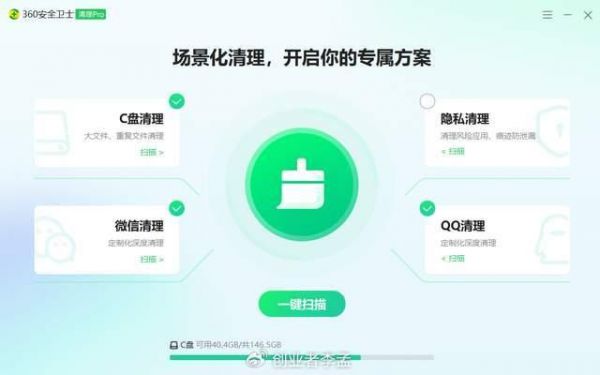 然而我一直还是用360安全卫士着,我觉得对于我最大的帮助,莫过于C盘快满了,他可以让我更快的找到微信和QQ的缓存图片和视频,我可以全选一口气删除了,有时候清理都是几十个G的大小的。