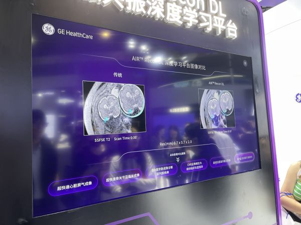 “这种AI处理技术相比传统的滤波器更保真,因为滤波器会过滤掉有效数据。”GE医疗展台工作人员说,医疗设备中的AI只需要一个不太复杂的AI模型,就可以大幅增强诊疗效果。