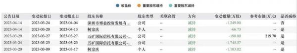 今年以来,公司股东不断发出减持。Wind数据显示,2023年3月~4月,其实控人柯宗庆、五矿国际信托、深圳博益投资等股东合计减持约4442.32万股公司股份。
