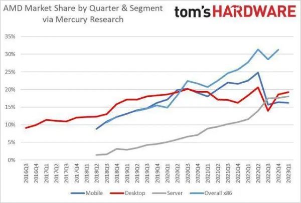 作为一家同时拥有CPU和GPU设计能力的芯片公司,AMD被看好也不意外。更何况过去几年,AMD在CPU市场连战连捷。