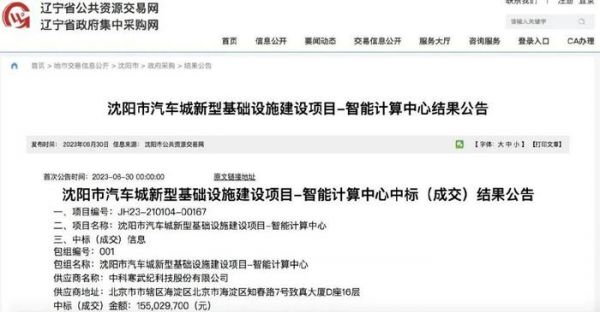 6月底,“沈阳市汽车城新型基础设施建设项目-智能计算中心”项目发布中标结果,公司拿下1.55亿大单。