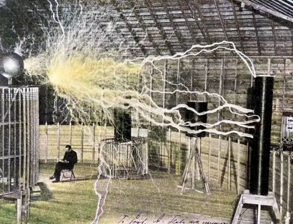图片拍摄于1900年,尼古拉·特斯拉正在他的实验室里工作