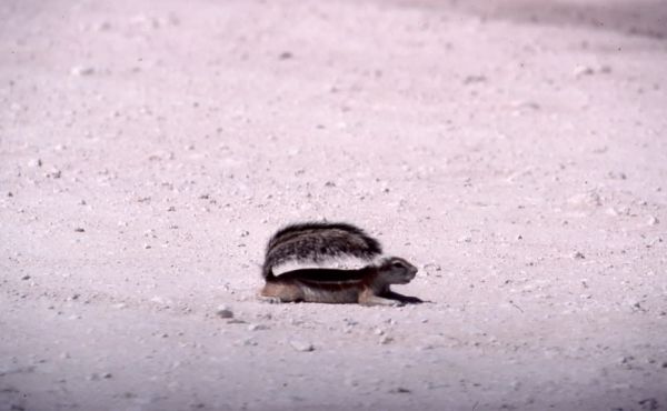 南非地松鼠会用各种方式保护自己,以免受到酷热的伤害。其中一种方法就是摊平趴着,从肚子散热。