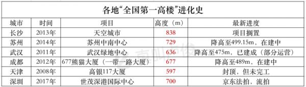 它们在追逐全国第一高楼的路上,都曾折戟沉沙。
