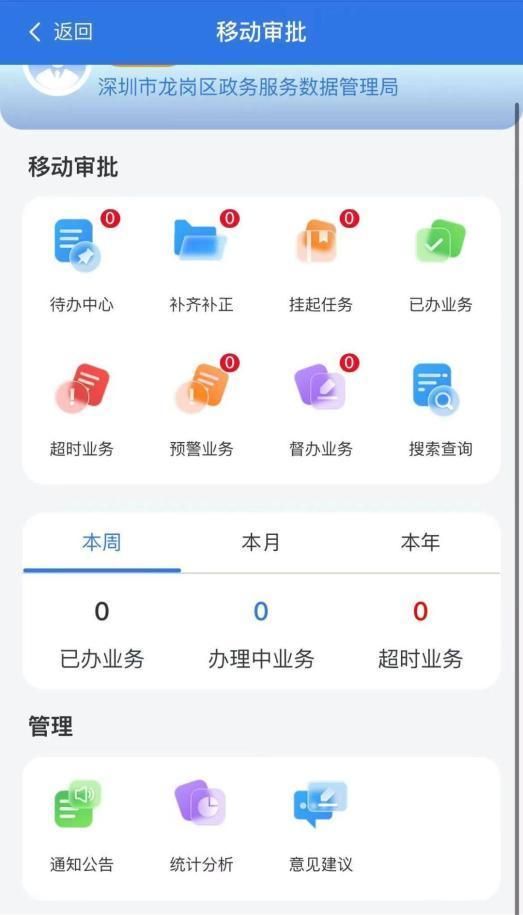 据了解,移动审批平台同步了电脑端公共审批服务平台所有功能,方便业务审批人员可以随时随地在移动端掌上审批,为审批人员赋能减负。同时,移动审批平台建设与粤政易APP和龙岗智慧办公平台深度嵌入,审批人员无需另行下载APP,实现单点登录。移动审批平台还新增业务数据统计分析和分享功能模块,审批单位领导可随时“掌上调度、指尖督办”,实现循数治理。