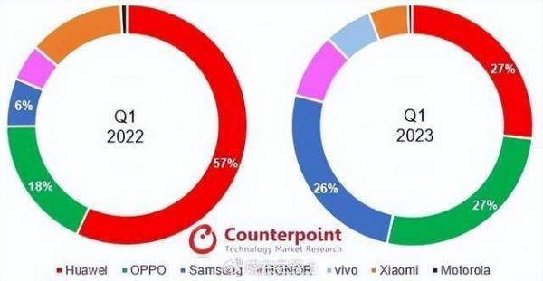 2023Q1中国可折叠手机出货量飙升117%:前三为华为、OPPO和三星