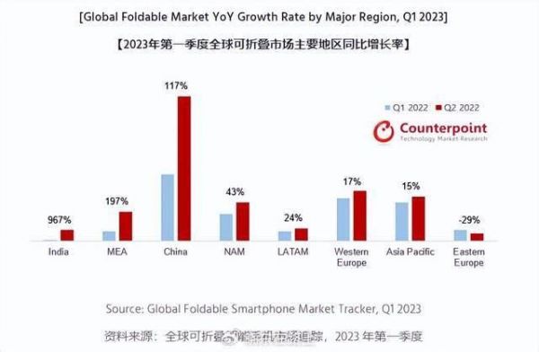 中国2023年第一季度可折叠手机出货量飙升 117%华为、OPPO 和三星占前三