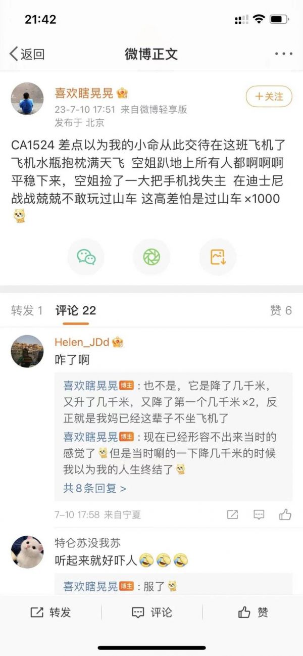 但航班落地后,请尽量不要四处发布并制造“危险”的论调和热点,毕竟,很多旅客认为的“特别可怕的颠簸”,可能真的只是自己吓唬自己的小场面。
