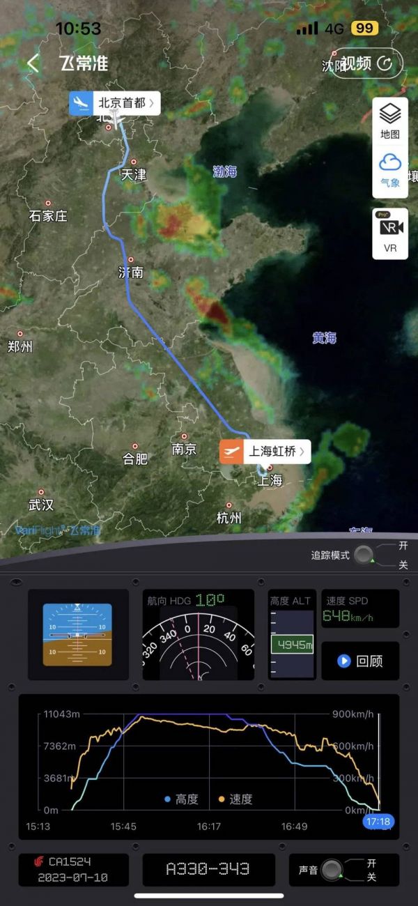 “下降几千米,又上升几千米”,我非常理解旅客对于颠簸的恐惧,但如此描述确实有些夸张,其实通过飞常准,我们可以看到航班的飞行数据: