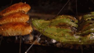 从上帝视角看着烤架上的众生,就像一场热闹的嘉年华。在壳上左右扭动身体的鲍鱼仿佛说:“看完我表演记得把我一口吃下去哦。”烤架上左右横行的帝王蟹终于停了下来说:“好了,现在帮我翻个身就能吃了哦。”象拔蚌狂喷着口水说:“不行,我看到自己都流口水了。”