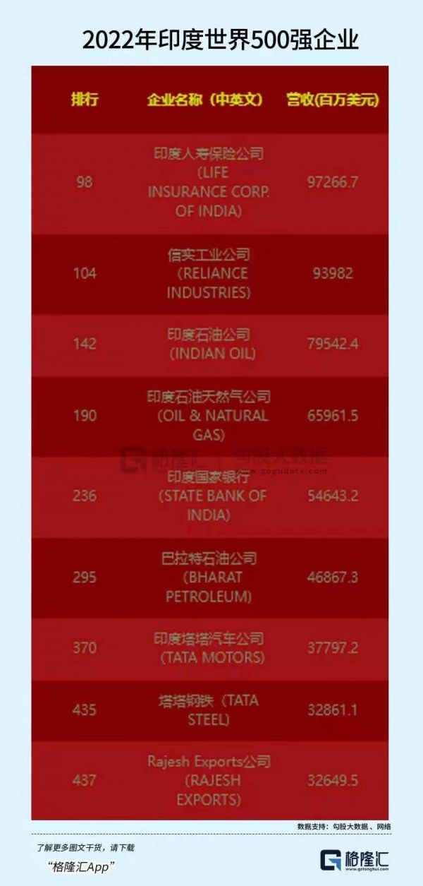 从印度前十大企业的分布领域也能看出,就没有科技类的。