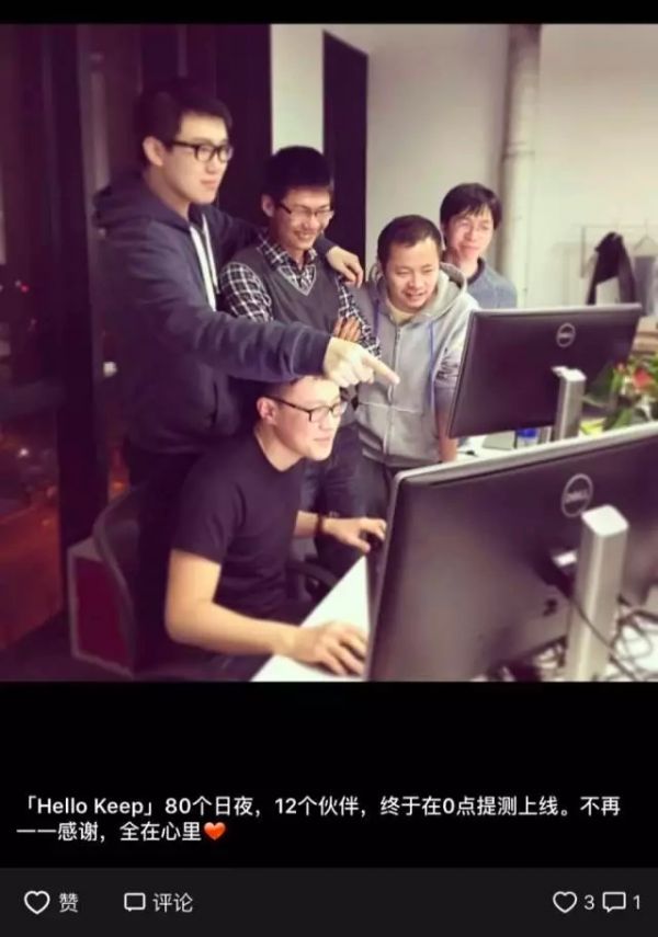 从 2014 年夏天的第一张产品原型图,到 2015 年 2 月 4 日 Keep 在应用市场上线,那段时间里,王宁要坐着公交车去见潜在的天使投资人,最终拿到了一笔 300 万元的天使投资。产品上线那天,团队也不过只有 12 人。