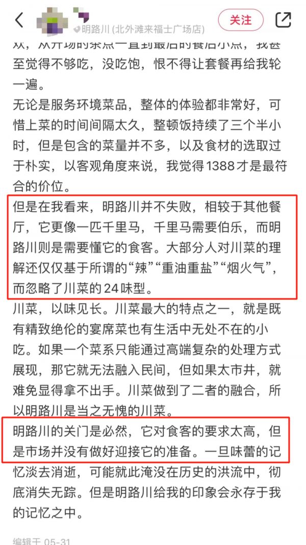 6月初,被不少人称为“上海川菜的天花板”“中国顶级川菜”的明路川,正式停业。
