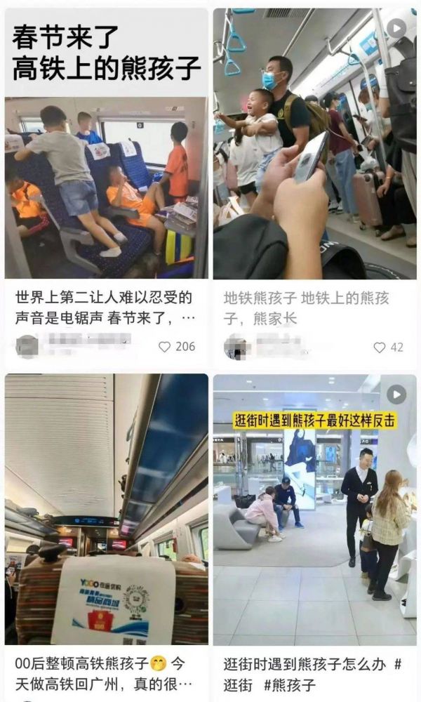 于是,关于在公共场合里“碰到熊孩子”的吐槽以及“如何治熊孩子”的分享,成了社交媒体上的热门话题。多数情况下,内容的娱乐性大于实操性,图的还是情绪发泄、吸引流量。