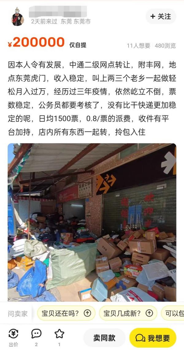 我们发现,在闲鱼等平台发布转让信息的不止有一级加盟网点,还有二级网点,乃至小区内的驿站等诸多形态。