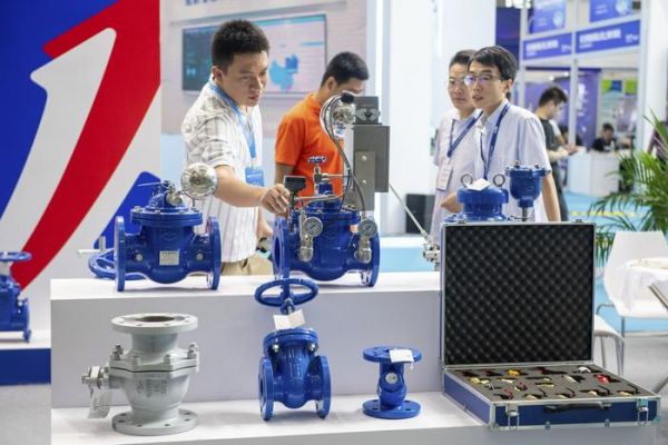 7月11日,参观者在2023深圳国际水务科技博览会了解阀门产品。 新华社记者 毛思倩 摄