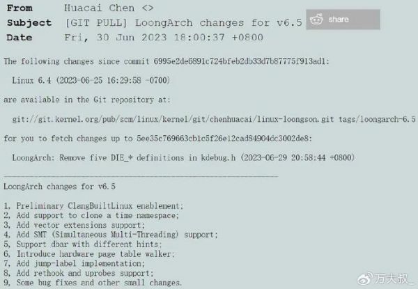 除此之外,还将支持128bit矢量处理器扩展指令(LSX)和256位高级适量处理扩展指令(LASX),这些都进一步带来性能方面的增强。