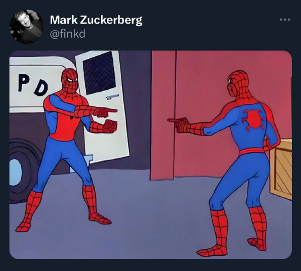 扎克伯格引用《蜘蛛侠:平行宇宙》剧照讽刺马斯克。(图/推特截图)