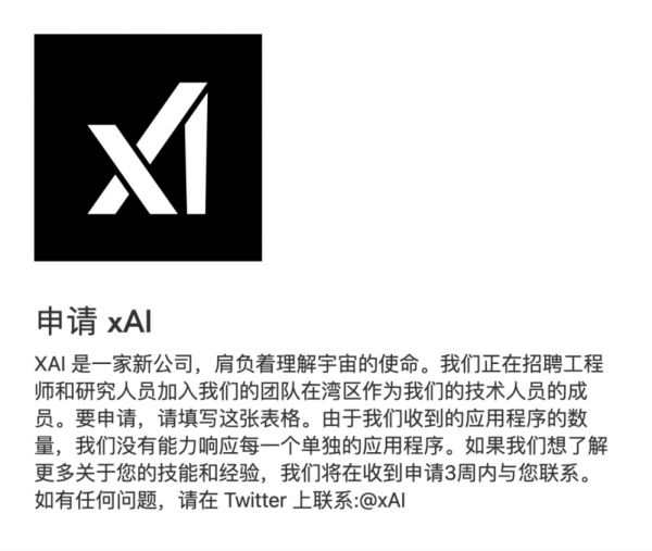 当然,仅靠这 11 个核心成员就想与员工数已经突破 600 人的 OpenAI 竞争,还是太难了。x.AI 也同步开启了招人计划,招揽 AI 相关的技术人才加入。