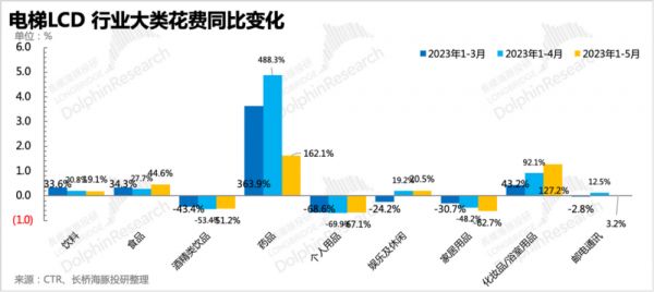 不同行业大类中,酒精类饮品的投放表现还在逐月变差,此外个人用品、家居用品的广告也还在同比下滑。其他品类要么下滑速度逐月有明显放缓,要么就是已经恢复同比增长。