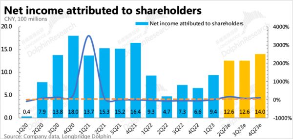 3. 成本费用上,按照正常年份(2021年)的支出水平预期,最终推算三季度净利润在12.6亿左右,同比增长70%,四季度净利润14亿。