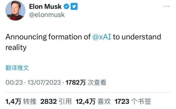当地时间7月12日下午,埃隆·马斯克在推特宣布了一个消息:成立人工智能公司xAI。