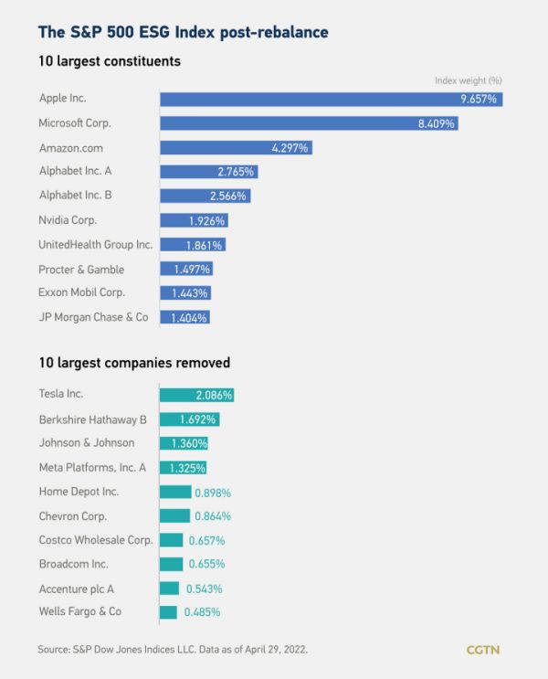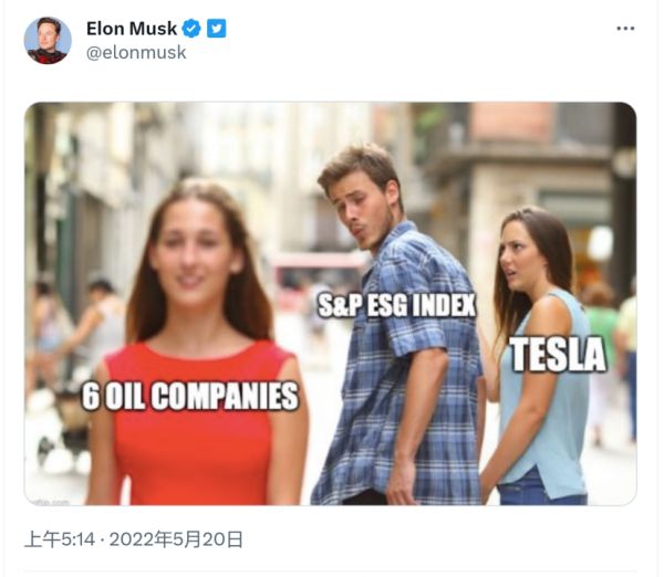 去年,特斯拉因ESG评分偏低被从标普500 ESG指数中剔除,而油气巨头埃克森美孚却进了前十大成分股。老马发推痛斥“ESG就是个骗局(scam),已然成了伪社会正义战士的武器。”