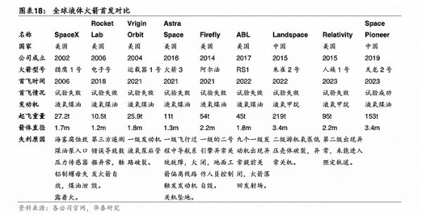 全球液体火箭首发对比(统计时间截至今年5月) 图片来源:华泰证券
