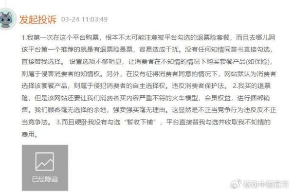 无独有偶,在黑猫投诉平台上,关于去哪儿网隐形捆绑消费业务的投诉比比皆是,其中涉及退票保障的不在少数。今年3月,有消费者投诉称,第一次在去哪儿网买票,去哪儿网第一个推荐的就是有退票险的票,不仅造成了干扰,在没有任何知情同意书的情况下直接勾选,让消费者在不知情的情况下购买套餐产品,属于侵害消费者的知情权,另外在没有征得消费者同意的情况下,网站默认为消费者选择该套餐产品,侵害了消费者的自主选择权。