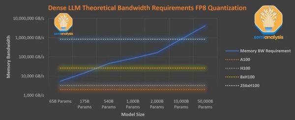 即便是 8 倍于 H100 的带宽也无法实现以每秒 33.33 个 token 的速度为 1 万亿参数规模的稠密模型提供服务;
